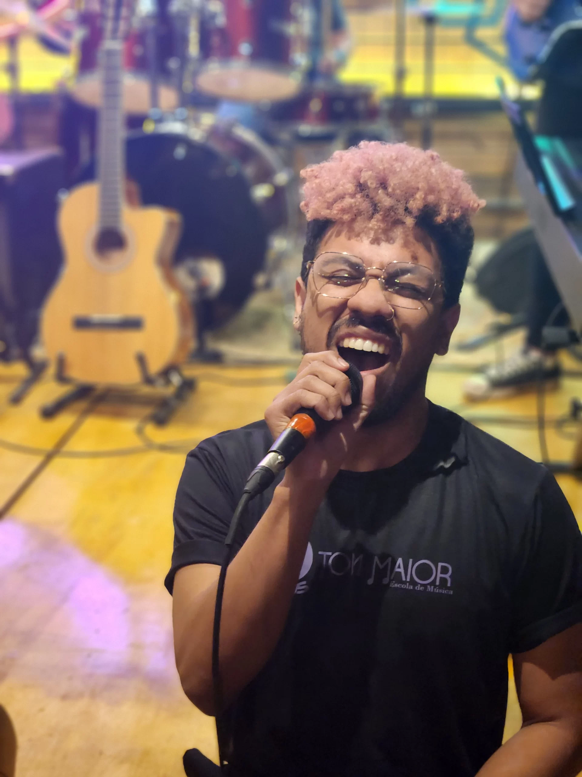 Além disso, atende aos alunos sobre questões de composição, improviso e expressão musical.